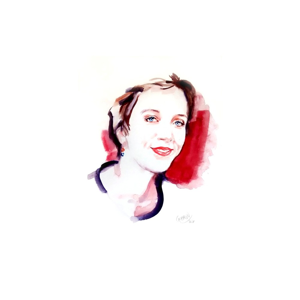 Portrait à l'aquarelle, à partir de photo, sur papier blanc 360g minimum - Grand format : 30 (largeur) x 40 cm (hauteur), dans la pure tradition des aquarellistes.